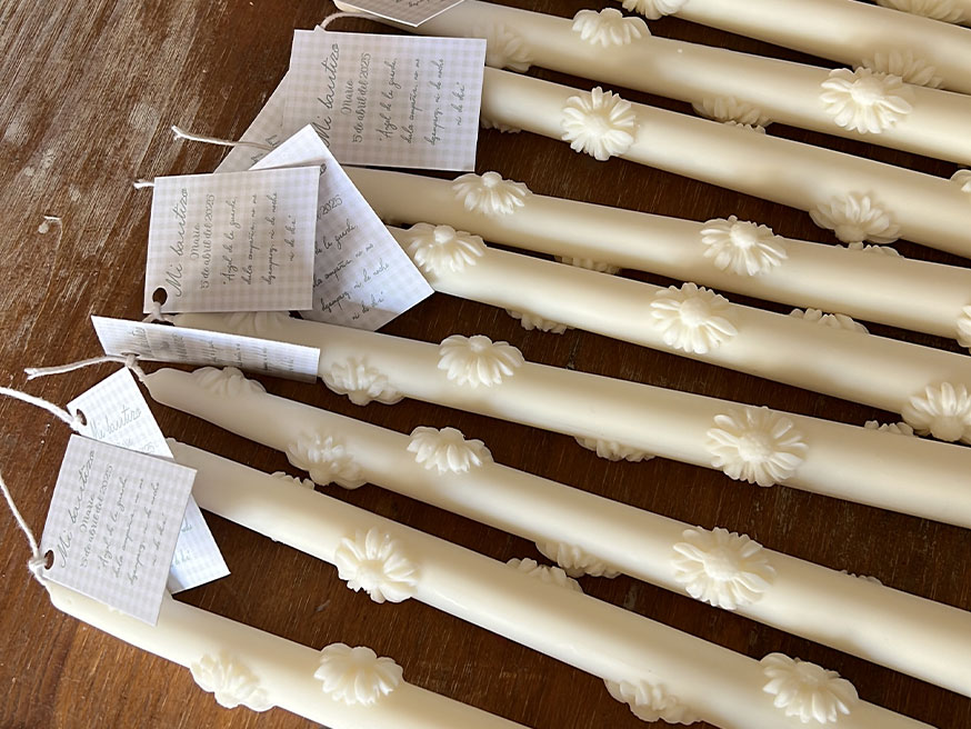 Con nuestras velas personalizadas, cada detalle se ilumina con un toque único y especial. Ya sea para bodas, comuniones, eventos corporativos o celebraciones íntimas, trabajamos contigo para crear la vela ideal que refleje la esencia y el estilo de tu día especial.