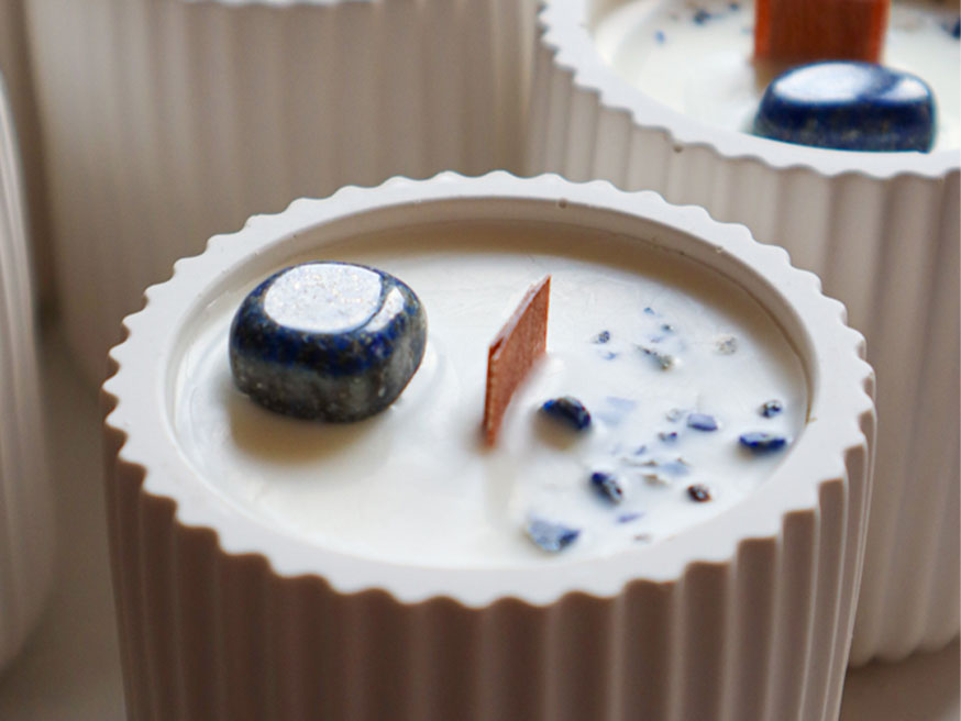 Utilizamos cera natural, cerámica, resina ecológica, colorantes orgánicos y aromas naturales, cuidando todos los pasos del proceso de tu pedido especial.