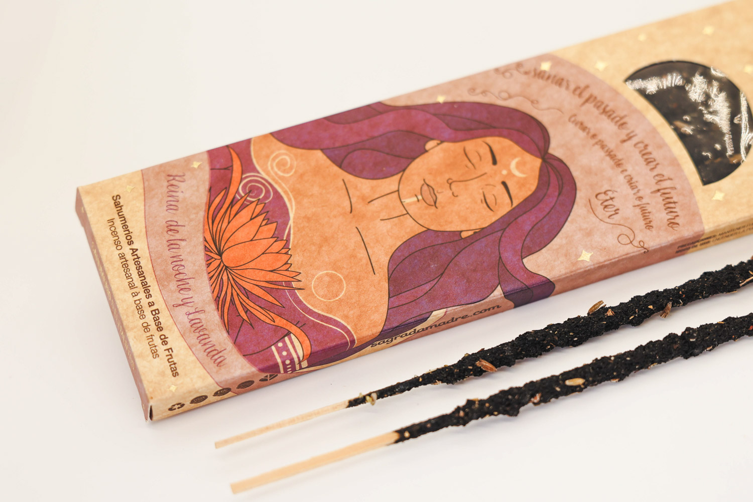 Incienso Artesanal Fruit Base Hecho a mano Contenido: 6 varillas gruesas de duración extra Duración: cada varilla dura 1 hora Contenido: Resina de Olibano, Aceite concentrado flor reina de la noche, biomasa de frutas, carbon vegetal, aglutinante natural y sal. El transformador aroma del incienso envuelto en la apasionante fragancia de la reina de la noche, brindan la claridad para vivir la maravilla del momento presente.