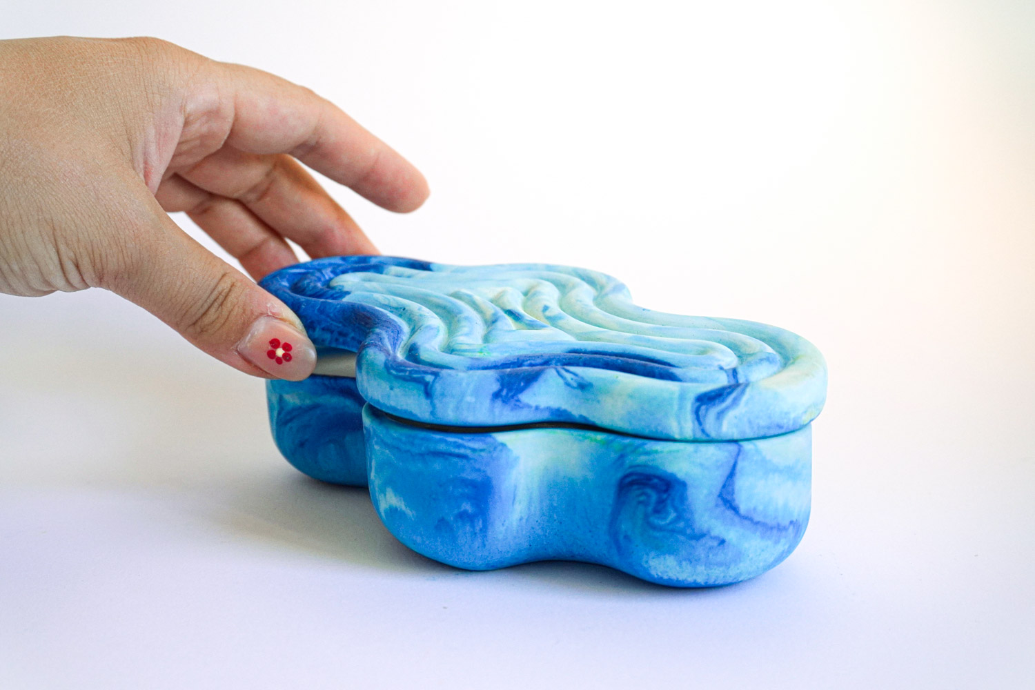 La Vela “Ocean Wave” es como tener un pedacito de mar en casa. Su recipiente, hecho a mano con resina ecológica, tiene un diseño de ondas y un precioso marmoleado azul que te hará pensar en las suaves olas del océano. El aroma a flor de algodón es fresco y acogedor, ideal para llenar cualquier rincón de paz y tranquilidad. Además, está hecha a mano con cera de soja, así que es tan amigable con el planeta como con tus sentidos. La Vela “Ocean Wave” no es solo una vela, es un soplo de aire fresco para tu hogar, combinando belleza, aroma y sostenibilidad en un solo producto.
