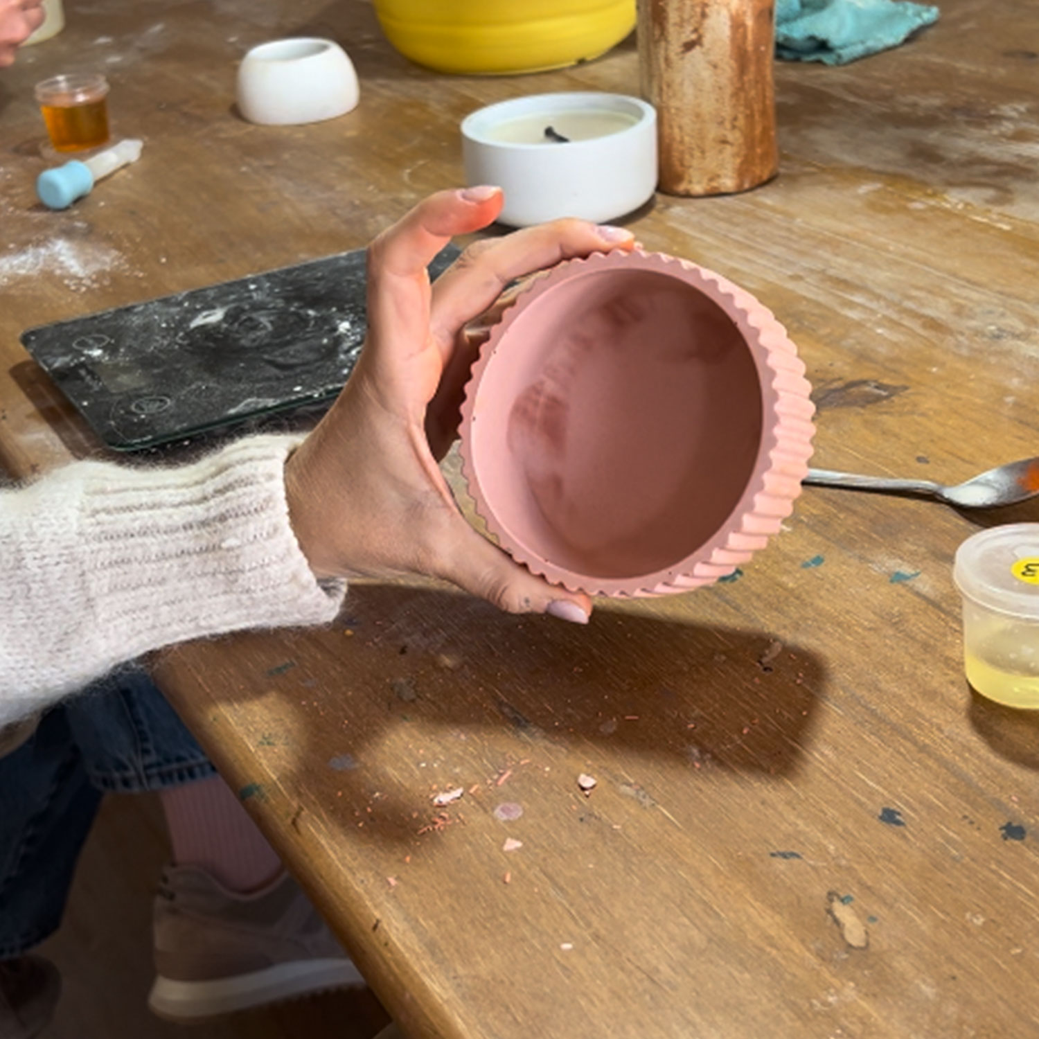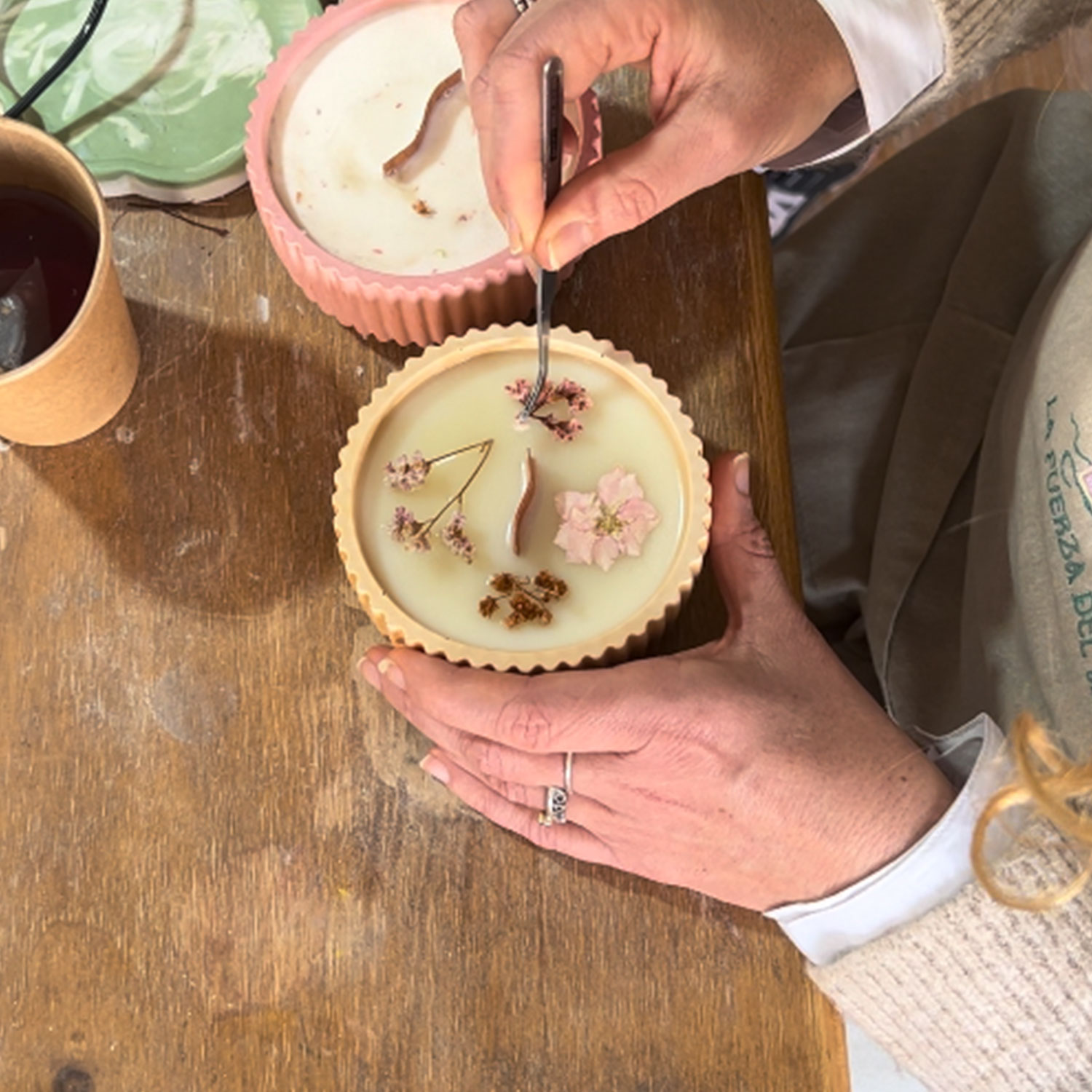 Vive una experiencia inolvidable: en este taller no solo harás tu propia vela aromática, sino que también diseñarás y crearás tu propio recipiente desde cero, utilizando resina ecológica. Personalización al máximo: Elige el día del taller entre dos estilos de recipientes: modelo Vibe o modelo Basic, según tu estilo y gusto. Una vez en el taller, podrás seleccionar el color de tu recipiente para que combine perfectamente con tu decoración o personalidad. ¿Qué incluye el taller? Creación personalizada del recipiente con resina ecológica. Uso de cera de soja 100% natural para una vela más sostenible y saludable. Elección de fragancias para tu vela aromática. Decoración de tu vela con flores, purpurina y/o otros elementos para darle un toque único y especial. Todo el proceso creativo, sin necesidad de experiencia previa: desde el diseño del recipiente hasta el vertido y decorado de la cera. Llévate a casa una vela única hecha completamente por ti, diseñada para llenar tu espacio con calidez, estilo y aroma. ¡Reserva tu plaza y despierta tu creatividad! El taller incluye todo material necesario, bebida y snack.