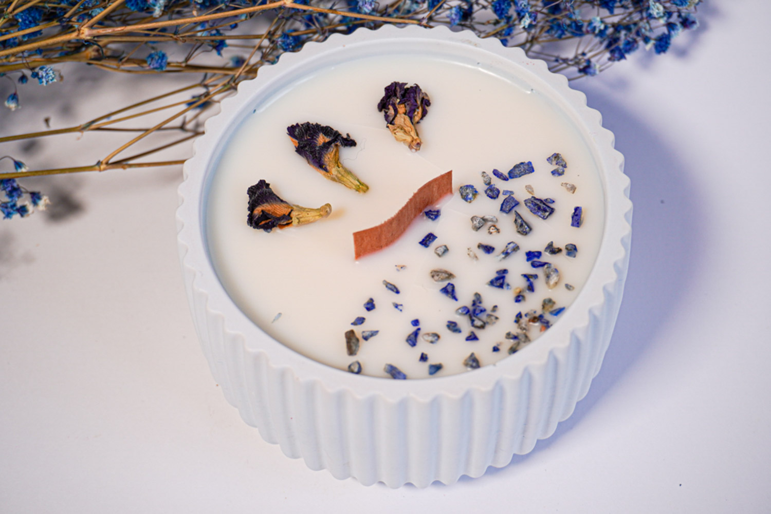 Encender esta vela es crear un espacio de calma y seguridad, donde la comunicación fluye de forma auténtica y protegida. No es solo una fuente de luz; es una invitación a conectarte con tu voz interior y expresarte con confianza, desde un lugar de claridad y paz. El aroma suave y etéreo de la flor de algodón llena el ambiente con una sensación de frescura y serenidad, ideal para esos momentos en los que necesitas calma mental y claridad para expresarte. Esta fragancia delicada invita a la introspección y promueve una atmósfera de tranquilidad que facilita una comunicación sincera y abierta. Decorada con pequeños chips de lapislázuli, esta vela está pensada para abrir y equilibrar el chakra de la garganta, promoviendo la expresión auténtica y protegiendo la energía de tu entorno. El lapislázuli, piedra de la verdad y la claridad, ayuda a desarrollar la comunicación honesta y fortalece el sentido de protección. Los pétalos de aciano, de un azul vibrante, aportan un toque de belleza natural, evocando calma y frescura mientras refuerzan la intención de apertura y protección. Material: Cera de soja 100% natural, para una quema limpia y respetuosa con el medio ambiente. Recipiente: Artesanal y ecológico, hecho en resina, ideal para reutilizar y añadir un toque especial a cualquier rincón. Aroma: Flor de algodón, un aroma fresco y sereno, perfecto para momentos de introspección y claridad. Decoración Energética: Chips de lapislázuli y pétalos de aciano, una combinación diseñada para fomentar la comunicación auténtica y proteger el espacio. Elaborada con amor, esta vela es el complemento perfecto para esos momentos en los que necesitas sentirte protegido y en paz para expresarte sin reservas. Ideal para ti o para alguien especial, llenará tu hogar de una luz suave y una energía que nutre, protege y promueve la claridad en la comunicación. 💙✨